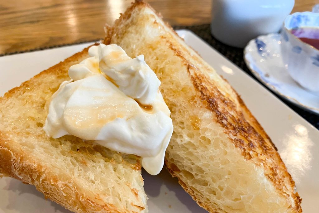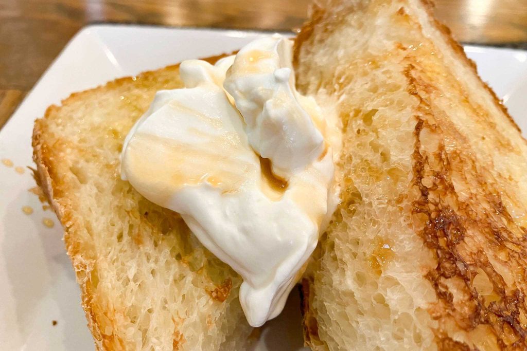 厚みのあるトーストは、外はカリカリ、中はデニッシュのような生地でフワッフワでした。