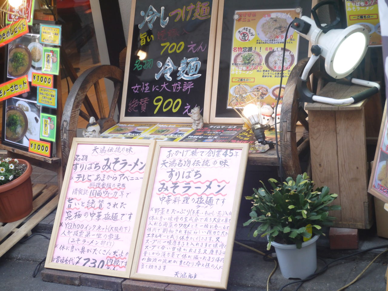 黄色い看板に「すりばち ら~めん」の文字が特徴的。