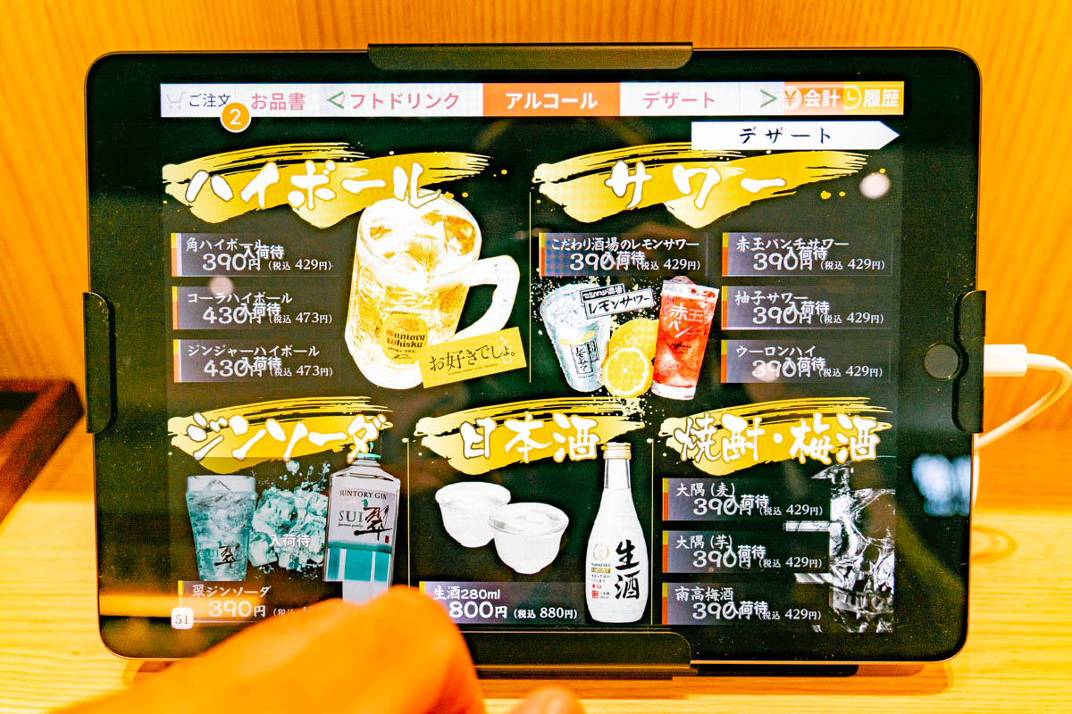 注文はすべてタブレットで行いまして、ページ数があるのでスライドショー↓