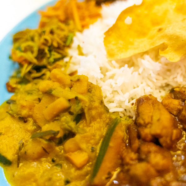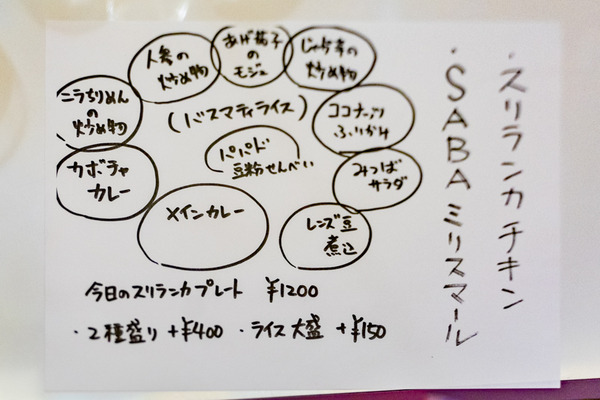 1つ上のメニュー画像を見てもらうと、何がのってるかおわかりいただけると思うんですが(オクラのメニューだけ記載なし)、すっごいスリランカ!