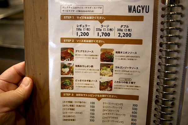 今回はハンバーグのランチを注文しましたが、ほかにはステーキのランチや、ハンバーグとステーキの組み合わせのランチなどがあります。