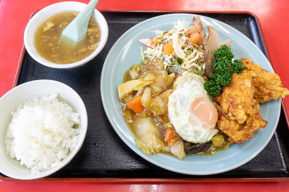 中華らしい濃いめの味付けかと思いきや、八宝菜は意外にもあっさりして食べやすい感じ。唐揚げや焼き豚もしっかり味がついていますが、全然しつこくない。