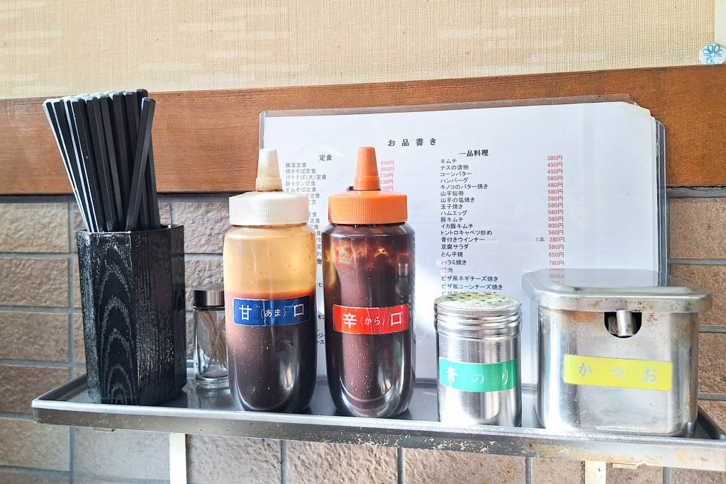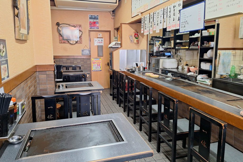 店内はカウンター席とテーブル席が4つ。テーブルが鉄板なのであつあつのお好み焼きが食べられるよ。