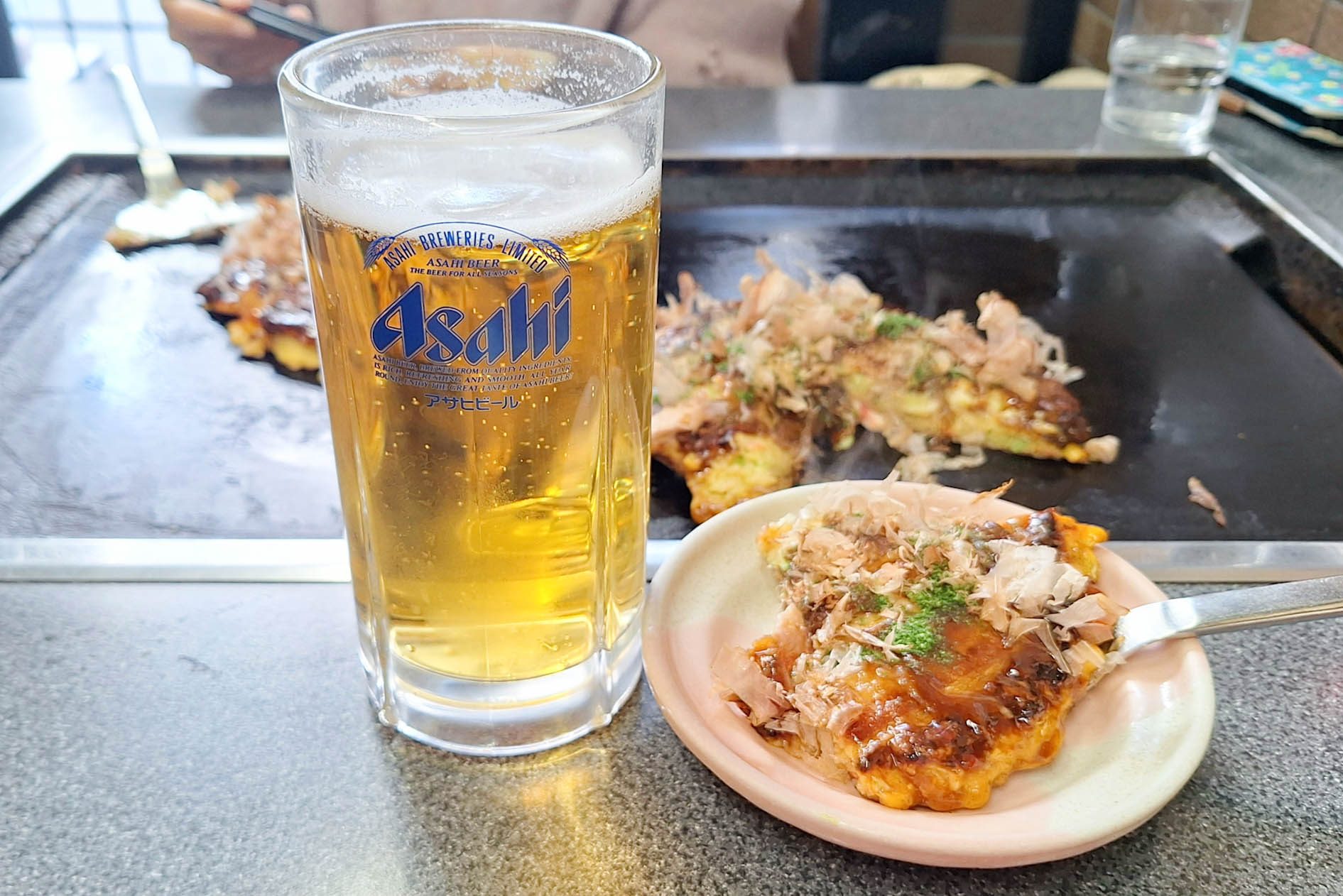 これ以上の組み合わせある?!あつあつふわふわのお好み焼きをビールで流し込みマス。