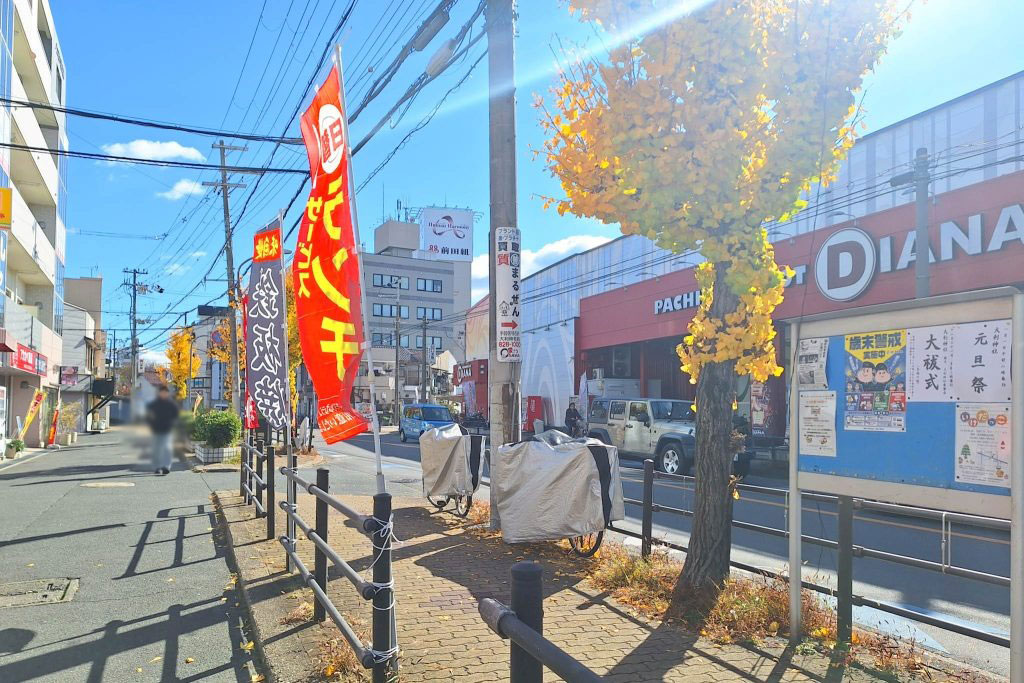 寝屋川市駅から徒歩10分程、池田秦線沿い。道向かいにはパチンコ店のダイアナさんがあります。