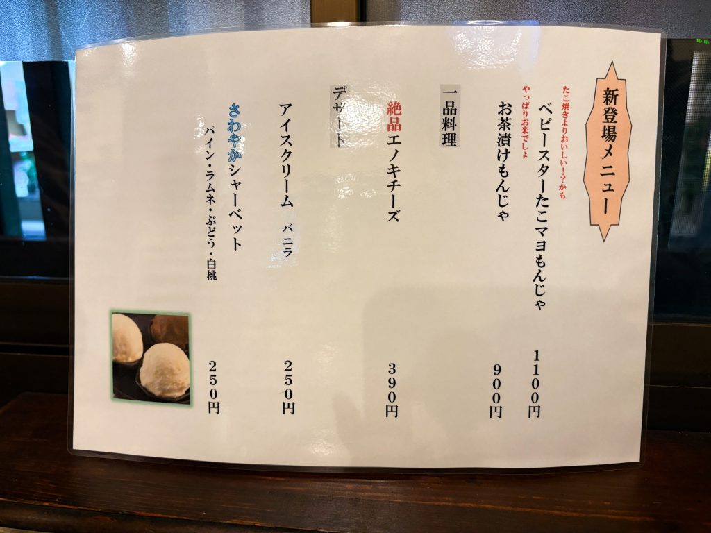 もんじゃ焼きはもちろん、280円から楽しめる一品料理や鉄板料理があるのが嬉しいです。