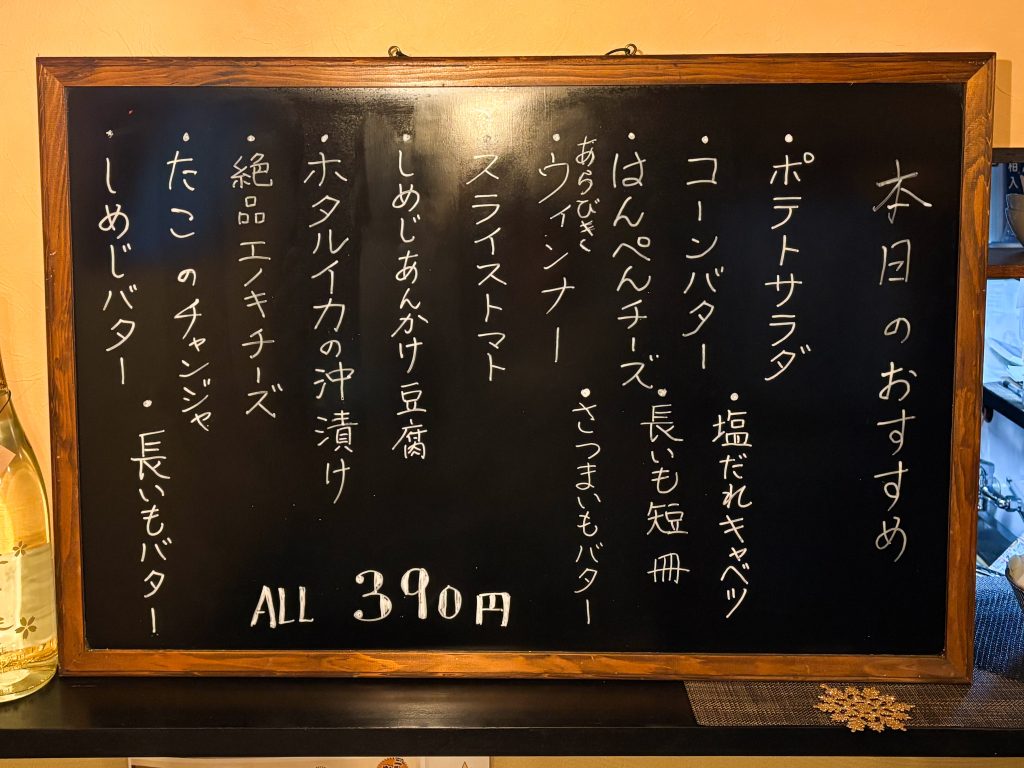 「おすすめの一品(塩だれキャベツ・さつまいもバター390円、いか下足塩焼き550円)」です!
