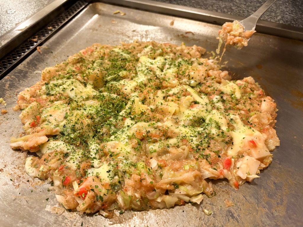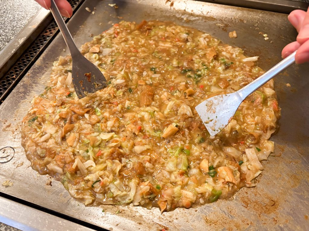 1枚目は女将さんが焼いてくださるので、もんじゃ焼き初心者という方でも安心◎