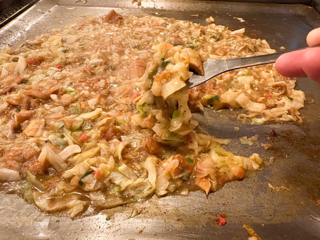 熱々の鉄板からハフハフ言いながら食べると、とろとろでめっちゃおいしい♪