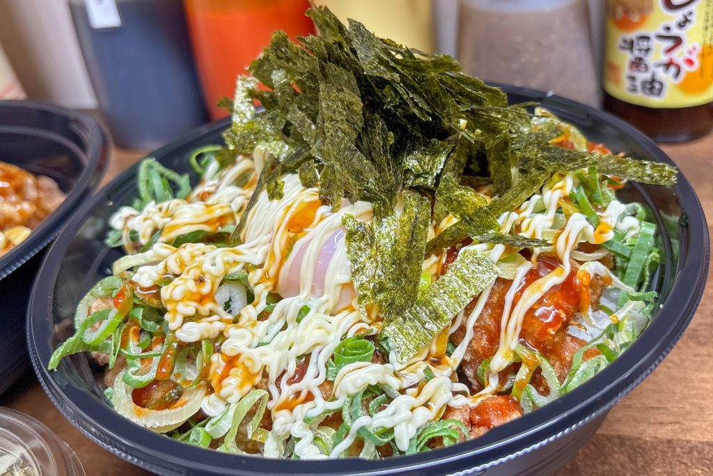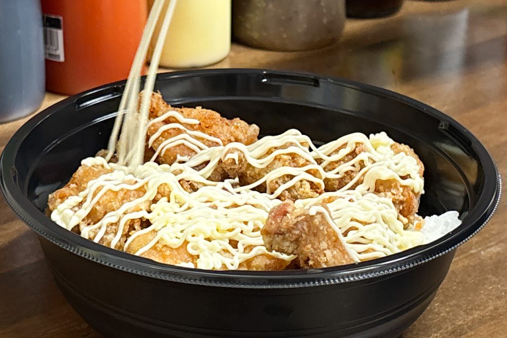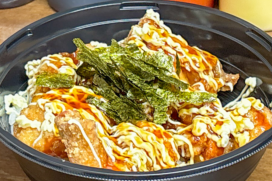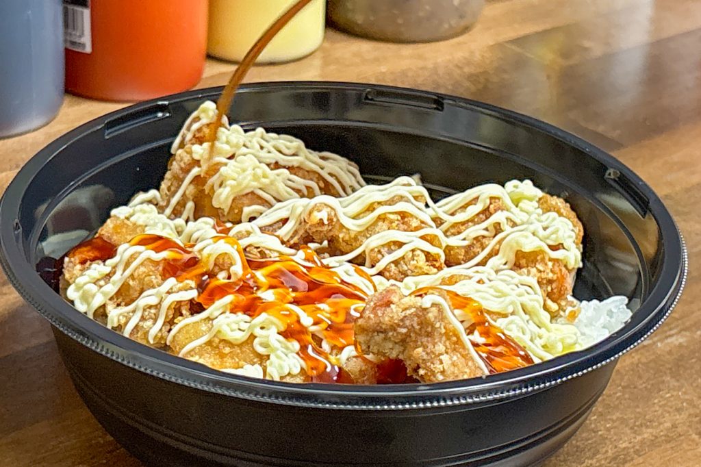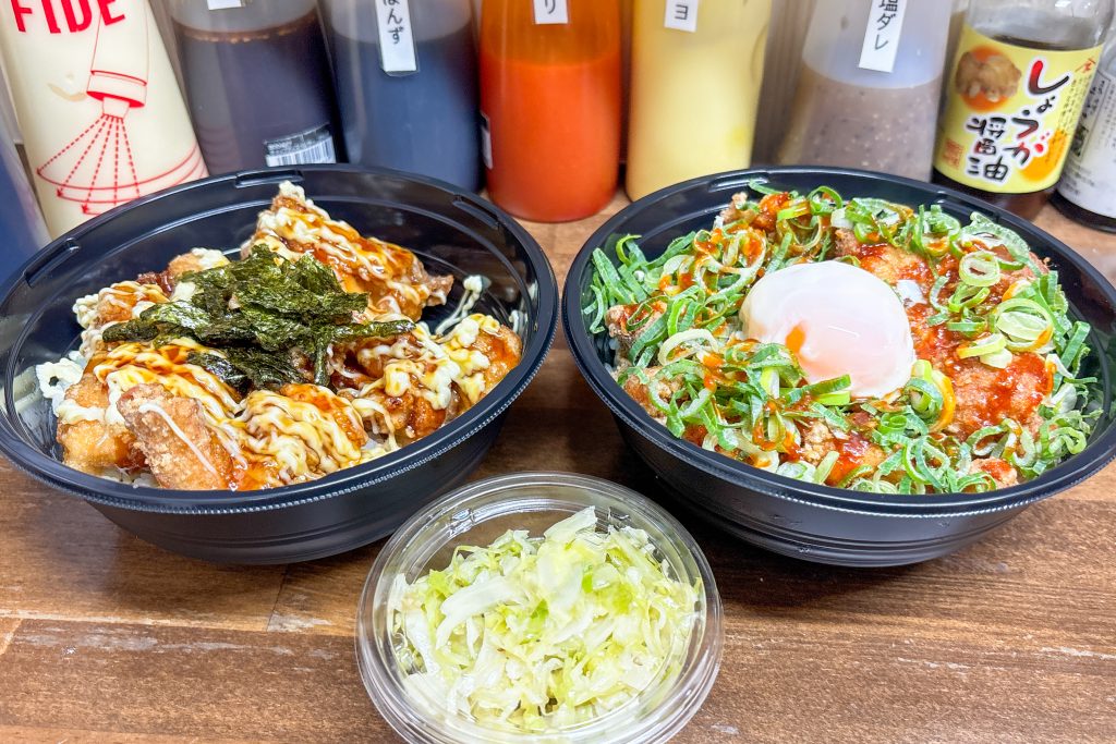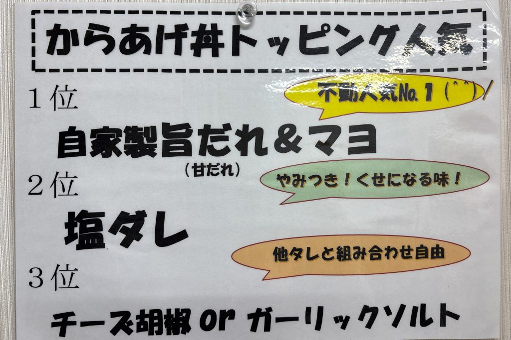 からあげ丼にはトッピング人気 ☆第1位☆ の“自家製旨だれ”と“マヨネーズ”。
