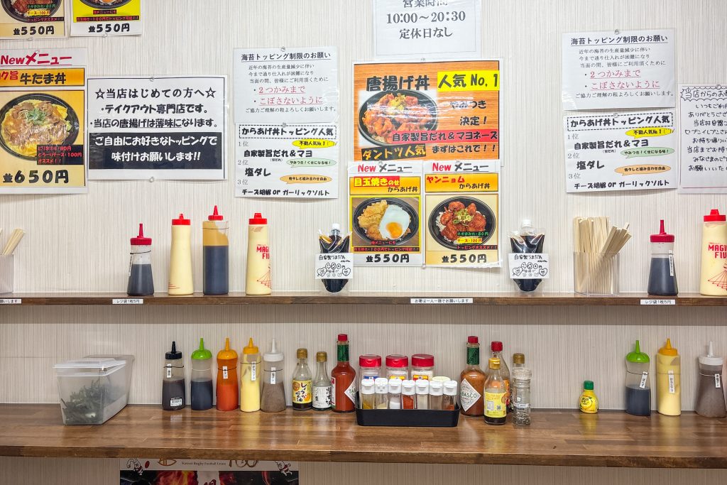 こ~んなに種類のあるタレとトッピングを自由にかけて、あなたの“オリジナル”からあげ丼が作れるんです!