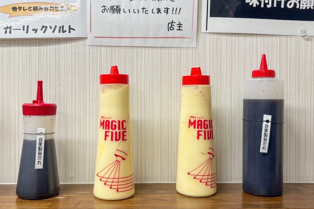 ねぎ玉唐揚げ丼には、これまたお勧め頂いた”焼肉のたれ“と”マヨネーズ“。