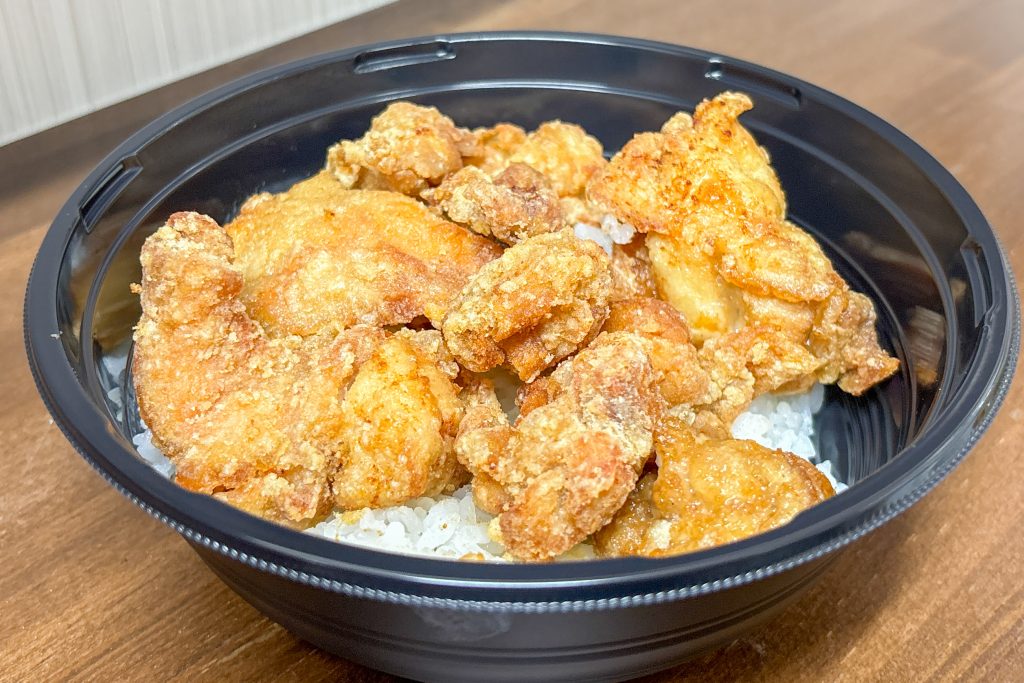 これで450円とは思えないほどの唐揚げの山に埋め尽くされています。