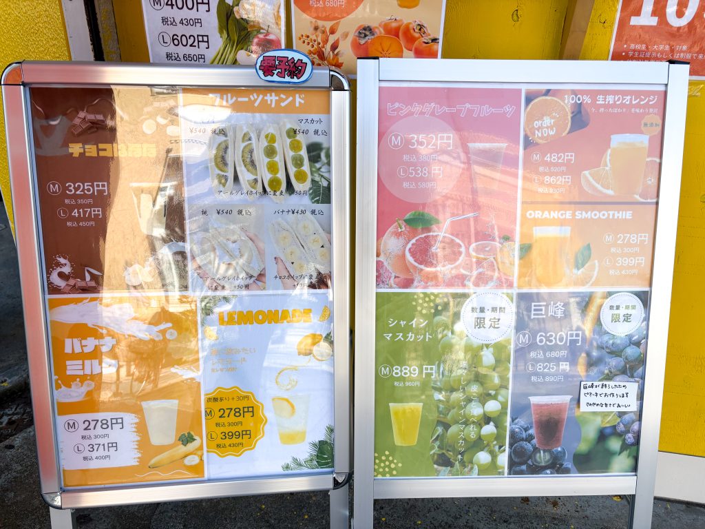 「フルーツジュース(シャインマスカット960、柿スムージー450)」です!