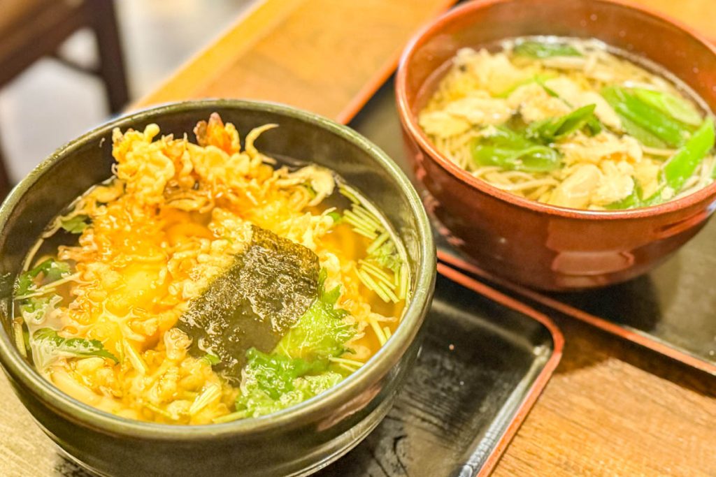 「天ぷらうどん(1130円)」と「鳥なんばそば(860円)」です!