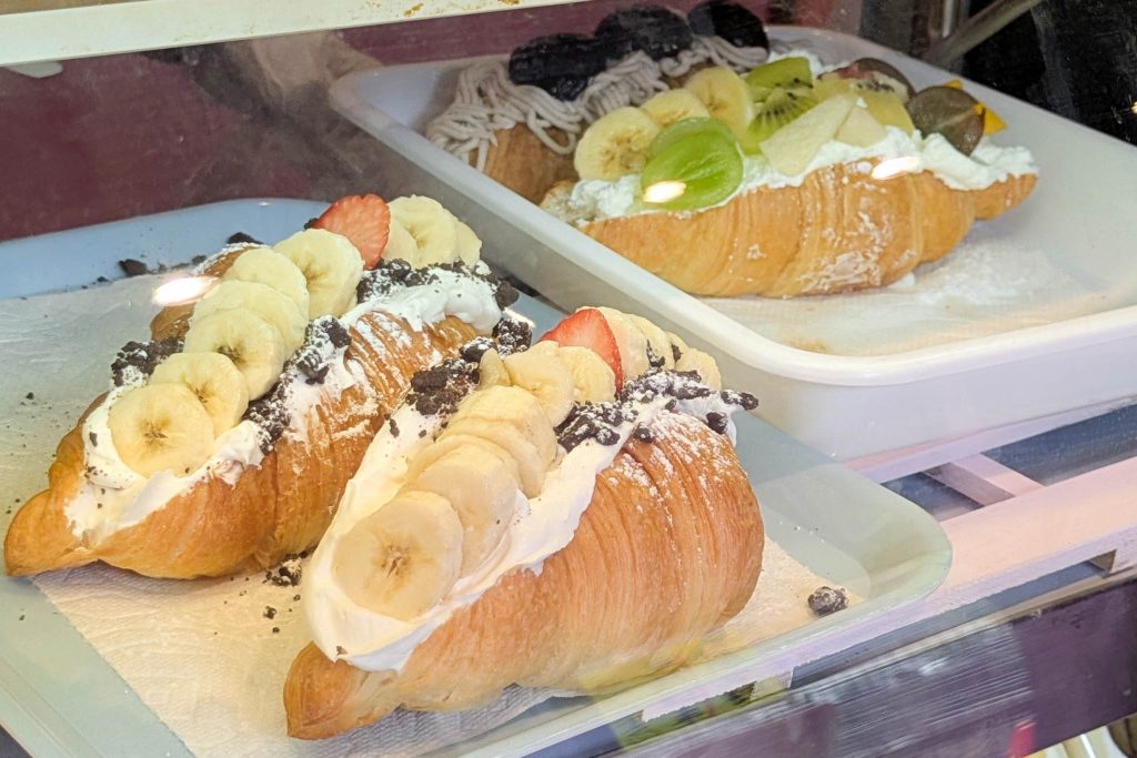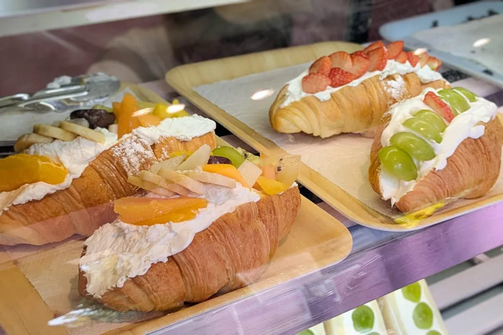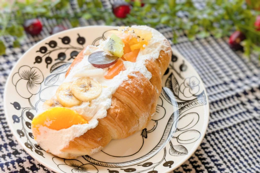 お店での美しくデコレーションされた「フルーツクロワッサンサンド」はこちら。
