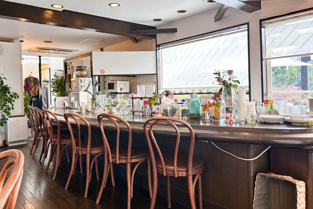 カウンターにテーブル席。外には四方黒池治水公園が見渡せるテラス席もありました。