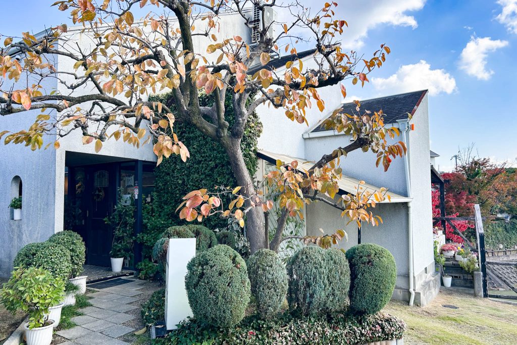 緑に囲まれた通路を抜け、落ち着いたBGMの流れる店内へ。