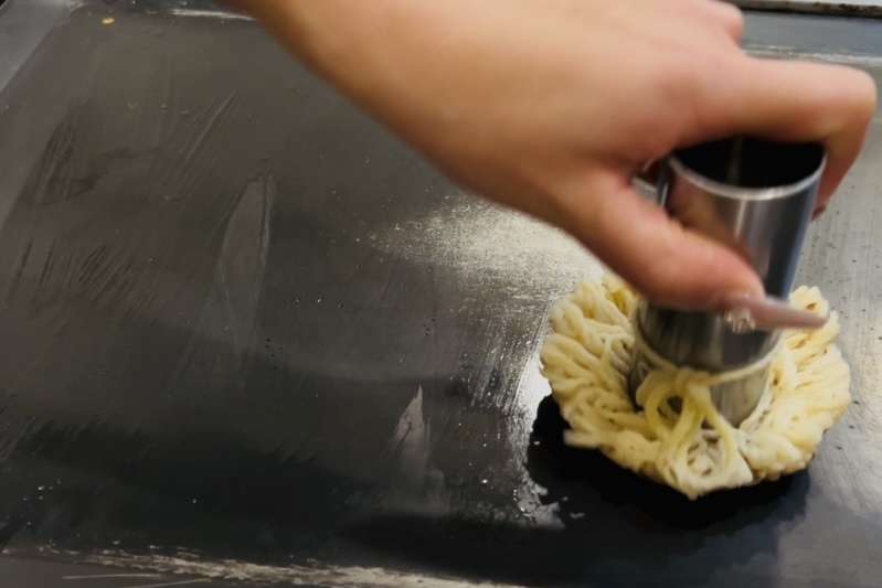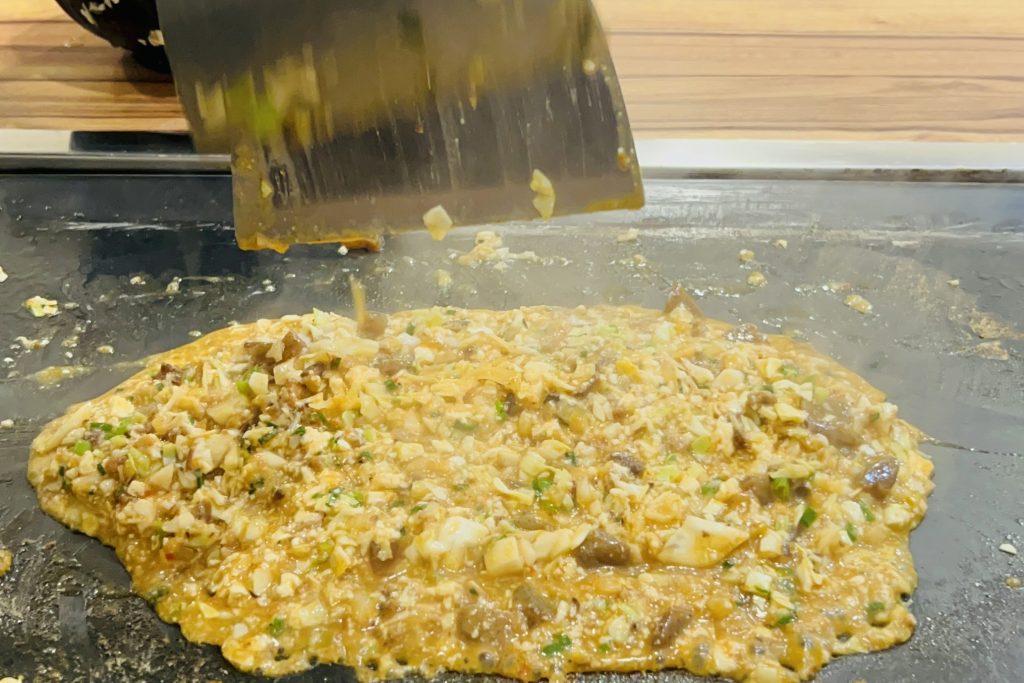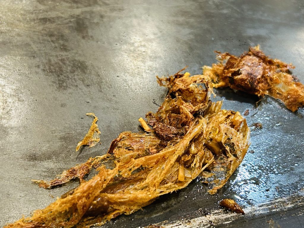 最後は店員さんがスクレイパーで、鉄板に残ったオコゲを丁寧に寄せてくれます。