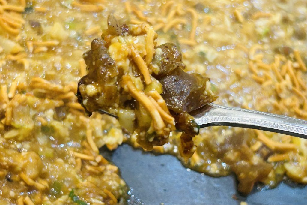 ベビースターのザクザク食感が加わって、口内が一気ににぎやかに。