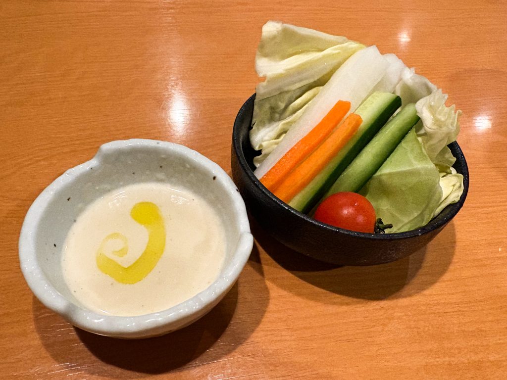 この日は同じく香里園にあるイタリアンバル「ワインとお料理BE-IN」さんとのコラボの、バーニャカウダソースのスティックサラダをいただきました。