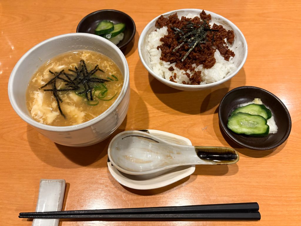 少し甘めの優しい雑炊と、出汁が効いたそぼろご飯から選べました。
