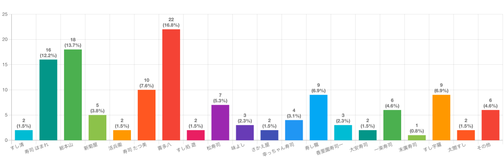 10月28日時点で107名の方に回答いただきました!ありがとうございます!果たして寝屋川市民が選んだ、好きなチェーン店以外の寿司店は…!?