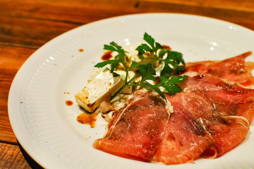 やんばる島豚の生ハムは、肉の味がしっかり濃くて、噛むほどに旨味が広がる。