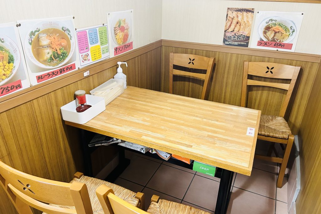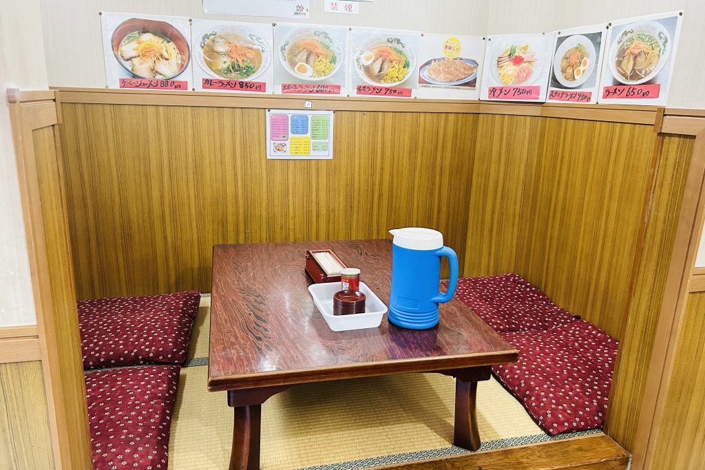 店内はカウンターが5席、4人掛けのお座敷タイプ、テーブルタイプの席が1つずつありました。