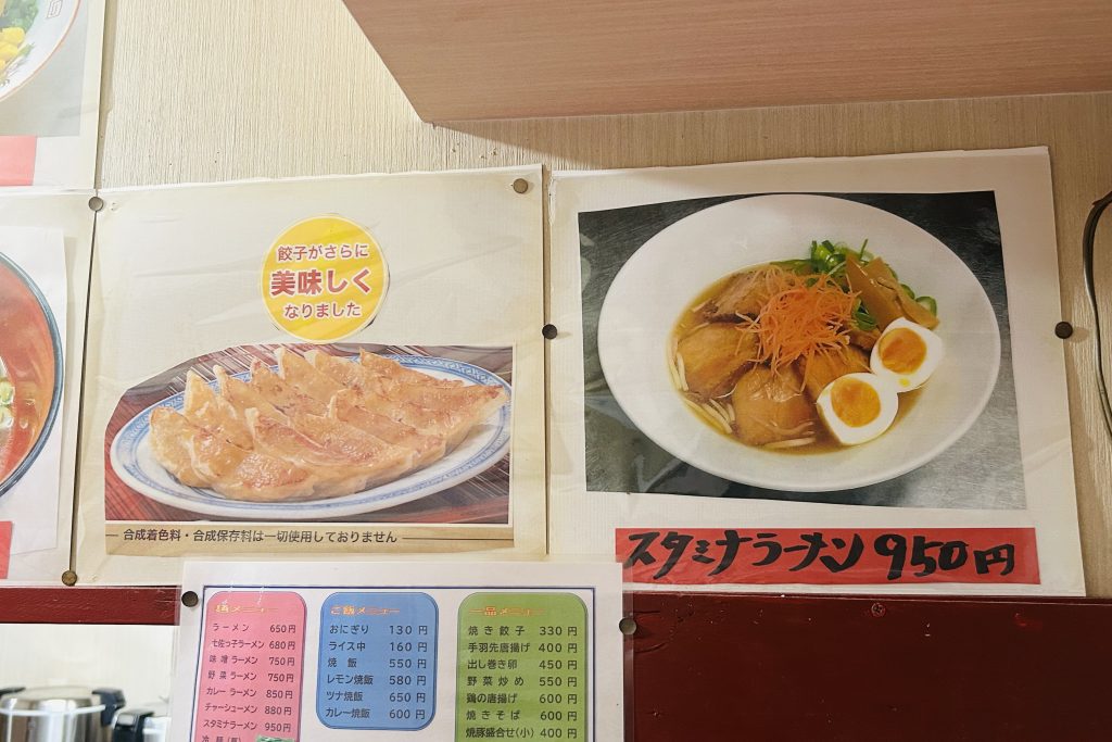 昔ながらの町中華らしいメニューがずらり。手書きメニューもあって、懐かしさすら漂います(笑)