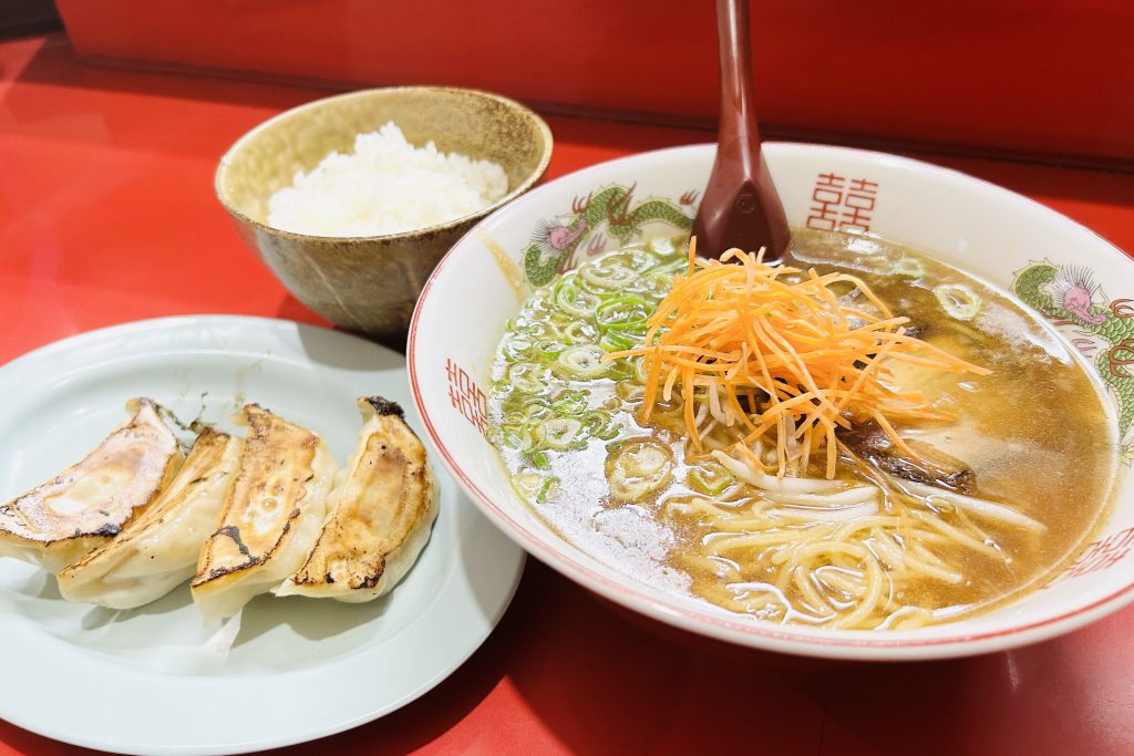 熱々のラーメンに焼き目香ばしい餃子、そして白ご飯。見ただけで心が満たされる組み合わせです!