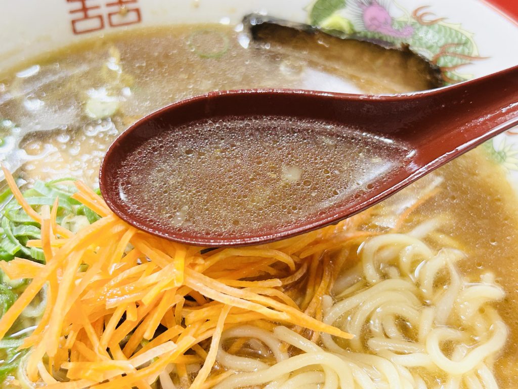 レンゲにすくうと醤油の香りがふわり、ほんのりコクのある色合い。