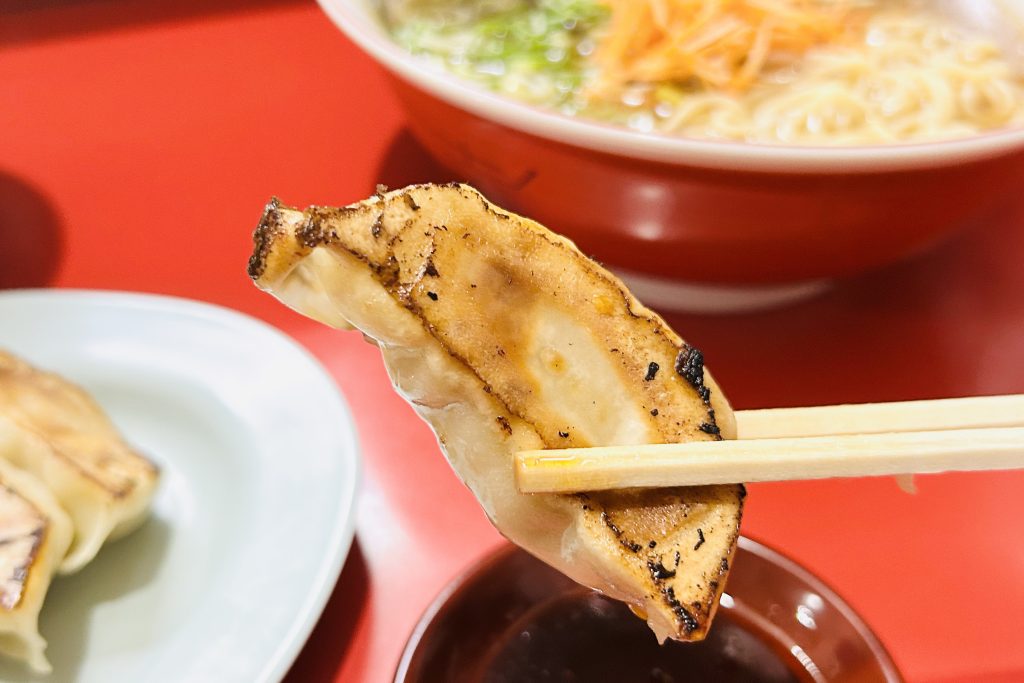 こんがり焼き目がついた餃子は、町中華らしい素朴なルックス。皿に並んだ姿からも香ばしさが漂ってきます。