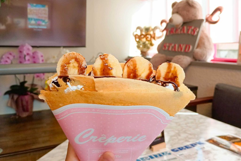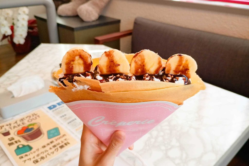 そして、チョコバナナクレープ!待っているとき、生地が焼けるいい香りが、たまりませんでした…。