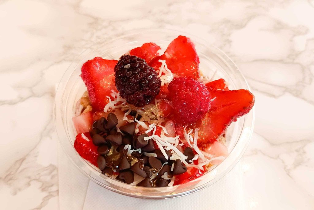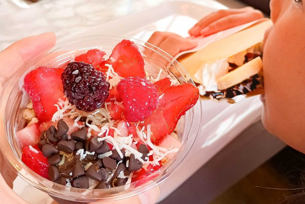 いちごやラズベリーの甘酸っぱさと、ハチミツがめっちゃマッチ。モリモリすぎて見えていませんが、下にはあの噂のアサイーもたっぷりです。