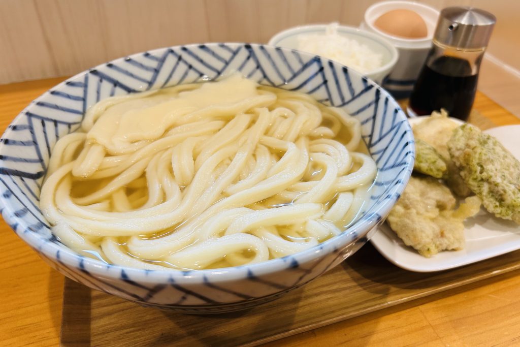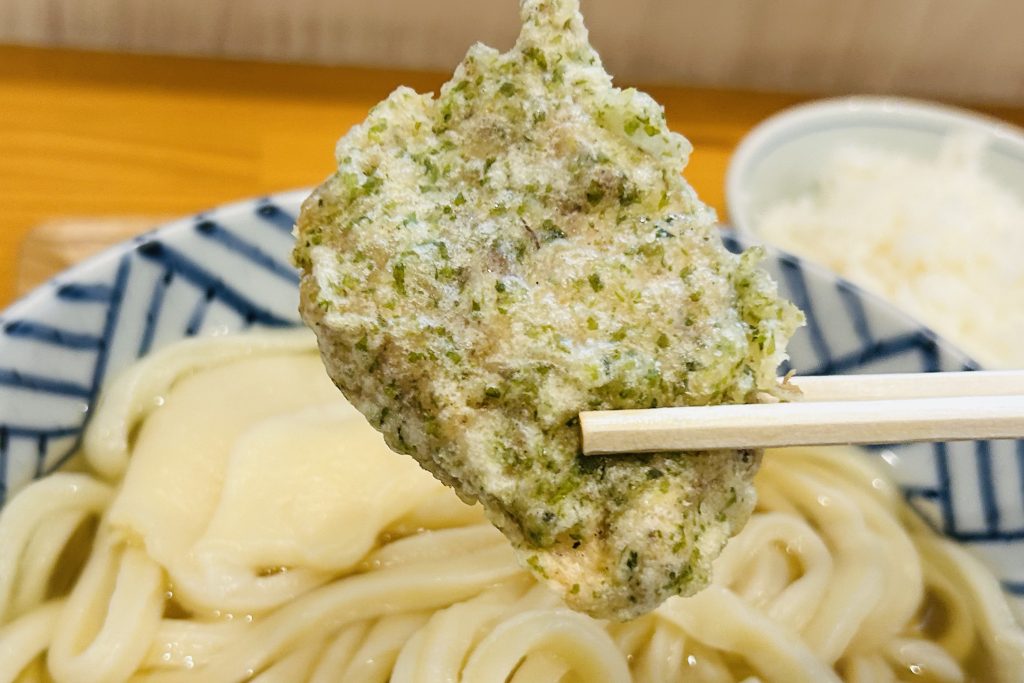 讃岐仕込みのしっかりコシともちもち食感の手打ちうどん、サクッ&ジューシーなかしわ天、そして出汁の優しさが揃った“全部入り”の幸せが味わえる、開店前から行列ができるのも納得の実力派です。