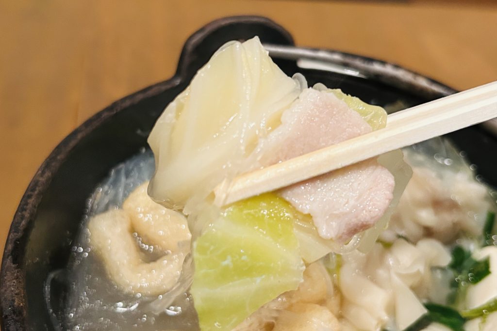 キャベツと白菜が甘し。豚肉もたっぷり入っており、旨みも溶け込んでいて、最後まで飽きませんでした。