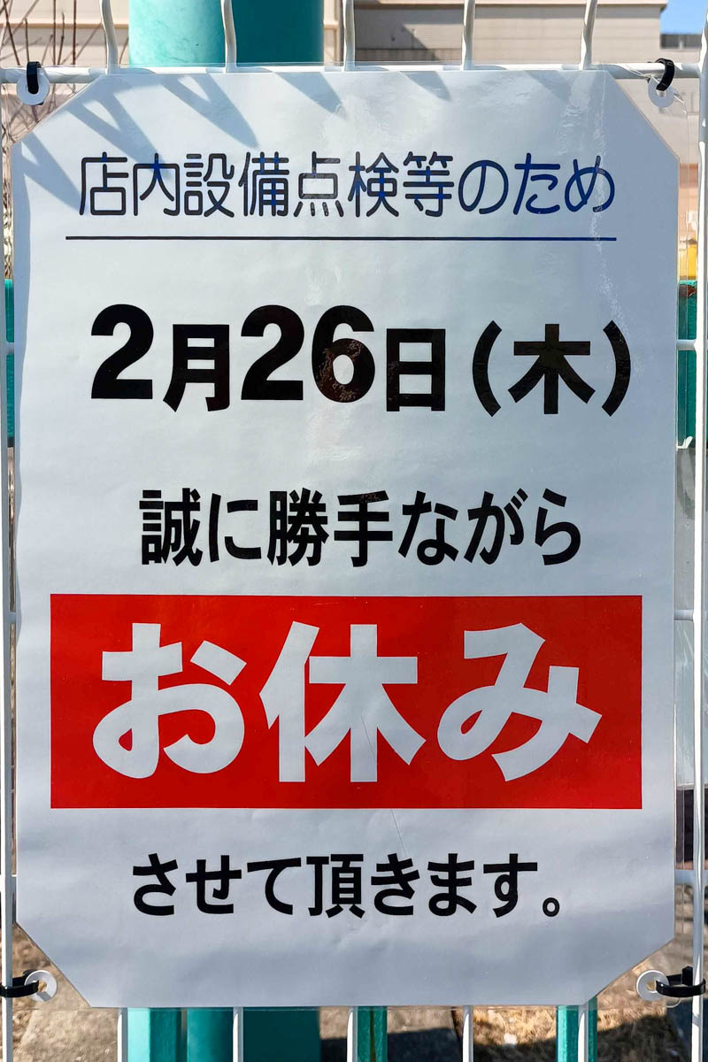 上記によると、店内設備点検等のため、2月26日(木)はお休みとのこと。普段よくアルプラを利用している方は、覚えておくとよさそうです。