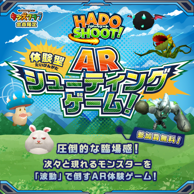 拡張現実の世界に出現するモンスターをモーションセンサーで波動を出して倒す新感覚のゲーム体験が楽しめるとのこと。参加者にはトレーディングカードや認定証のプレゼントも。