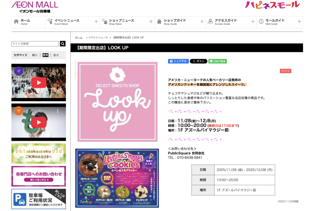 イオンモール四條畷に「LOOK UP」の期間限定店が出店しているようです。