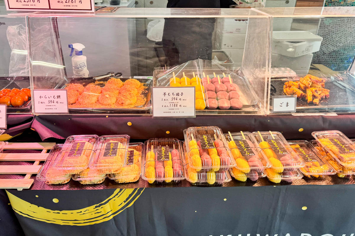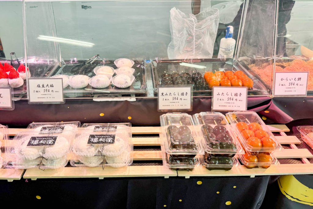 塩豆大福にみたらし団子などなど、たーくさんの和菓子が!美味しそー!!黒みたらし気になる。