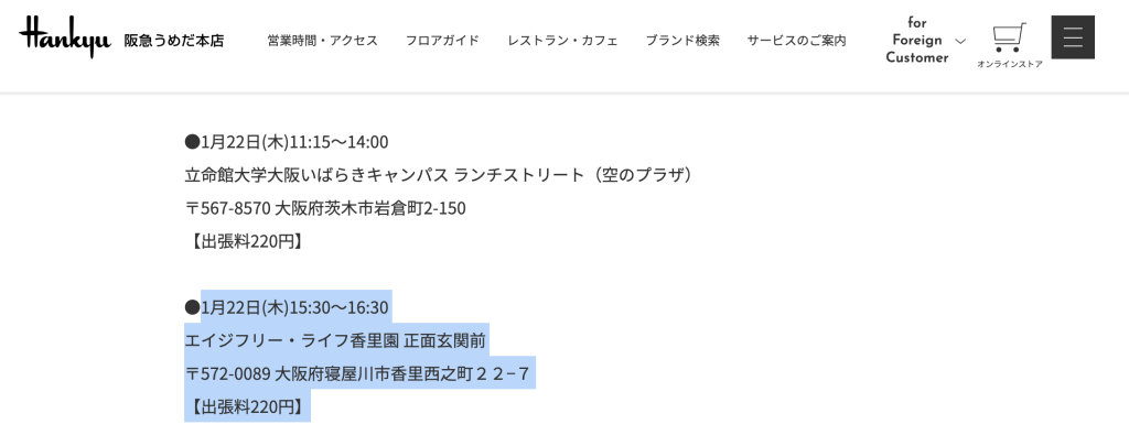 今回の香里園での出張料は220円。販売商品は会場毎に異なるそうなんですが、