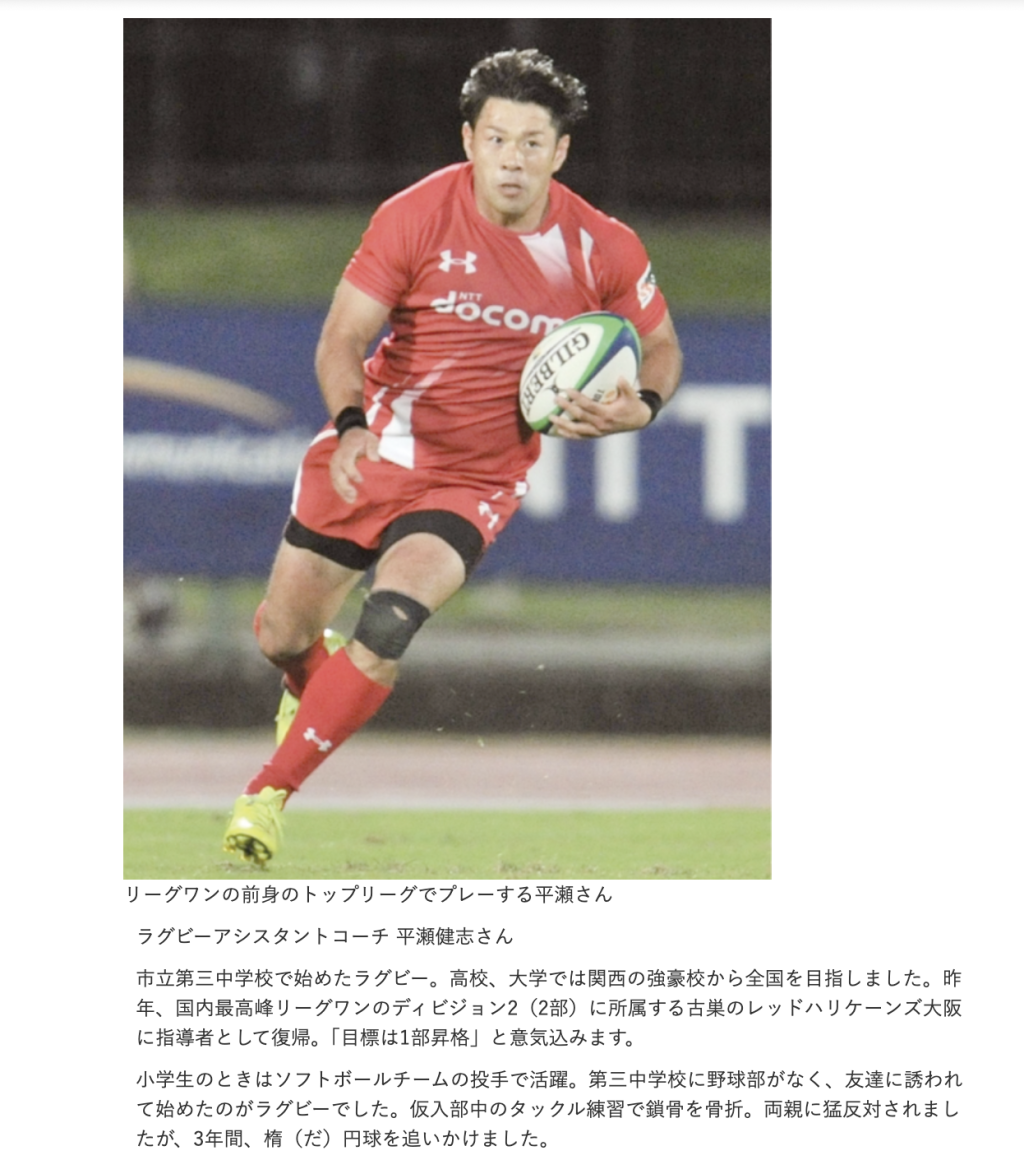寝屋川の中学校でラグビーを始め、古巣チームで指導者として活躍している平瀬さんの今後にも注目です!
