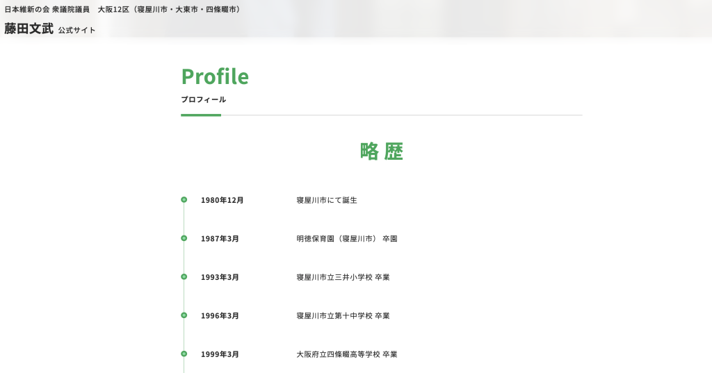 衆議院議員の藤田文武さんは寝屋川出身のようです。