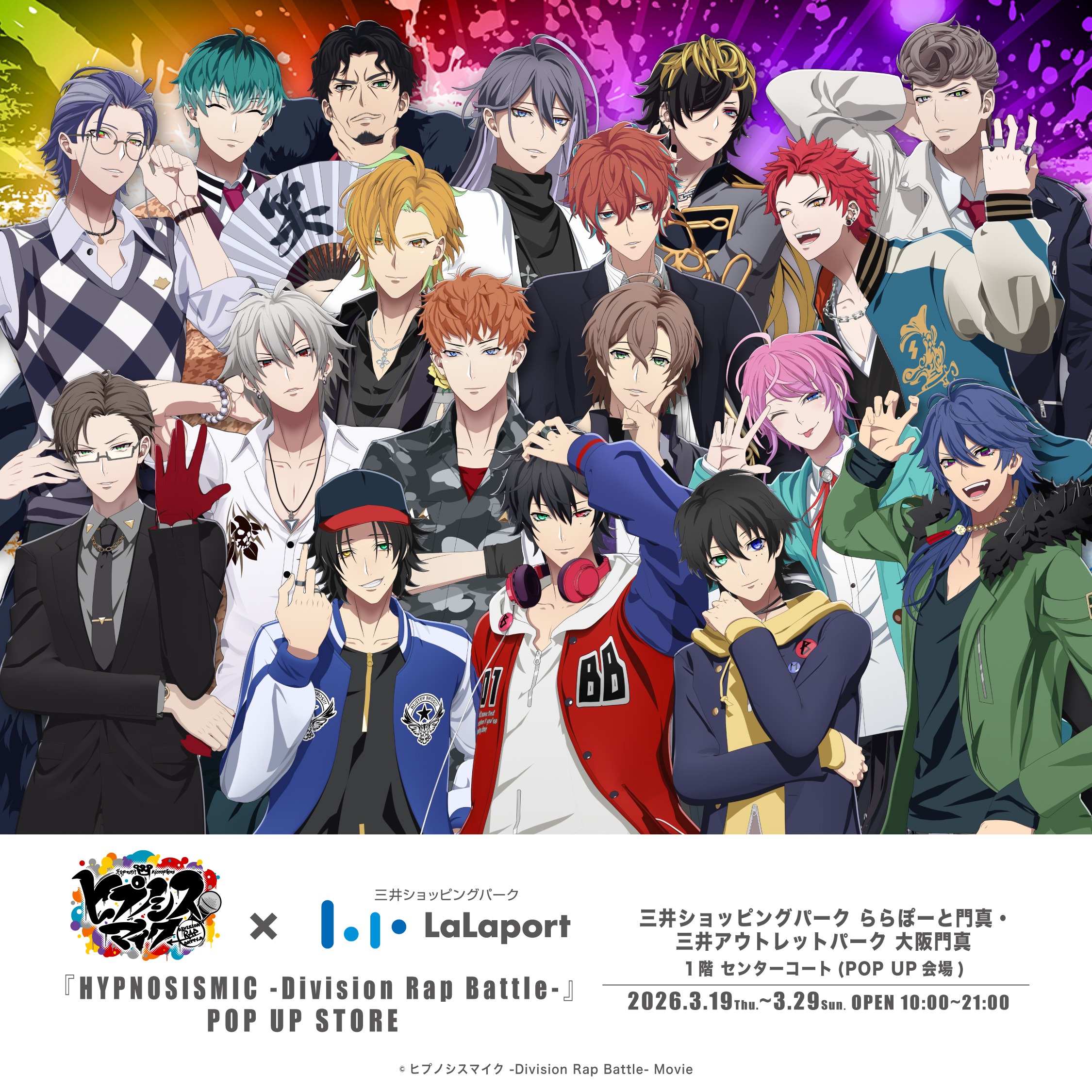 ららぽーと門真で「映画『ヒプノシスマイク-Division Rap Battle-』POP UP STORE」が開催されるようです。