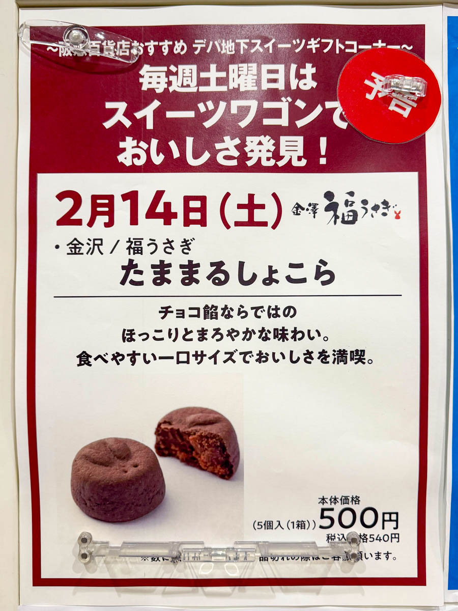 そして「阪急百貨店おすすめ デパ地下スイーツギフトコーナー」では金澤福うさぎの『たままるしょこら』が販売されるとのこと。