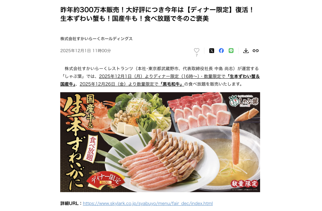 PR TIMESによると、期間は12月1日〜数量限定のようなので、気になる方はお早めに。