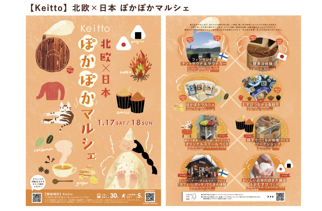 四条畷駅近くにあるmorinekiの「Keitto」で『北欧×日本 ぽかぽかマルシェ』が開催されるようです。