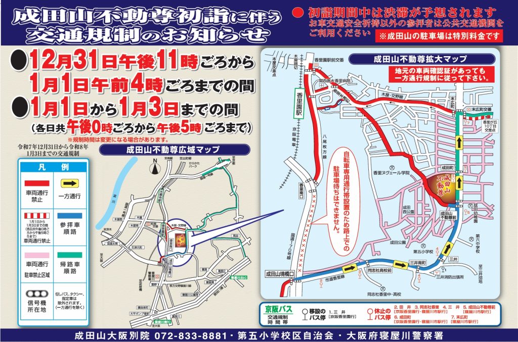 成田山不動尊の初詣に伴う交通規制が行われるようです。