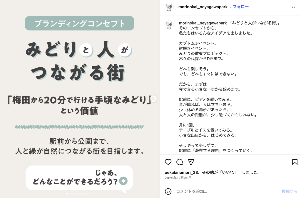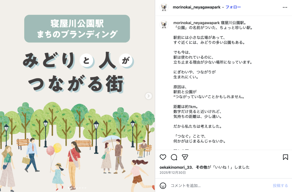 「みどりと人がつながる街」をコンセプトに、寝屋川公園駅界隈で、まちと人をつなぐイベントを企画していくのが『チーム寝屋川公園 森の会』なんだとか。